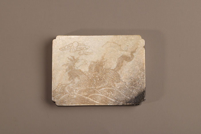 青玉雕海马驮书带饰,清(公元1644—1911年),中国国家博物馆藏