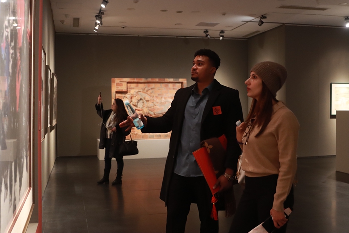 外籍嘉宾在“以梦为马——丙午新春特展”接受采访