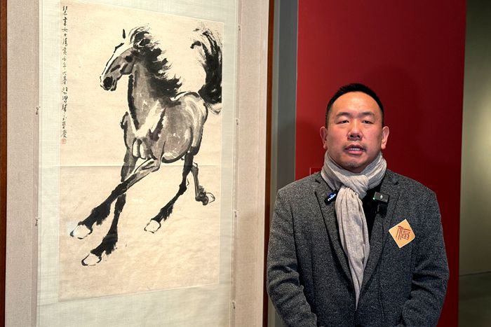 徐悲鸿嫡孙、徐悲鸿纪念馆展览典藏部主任徐骥介绍徐悲鸿画作