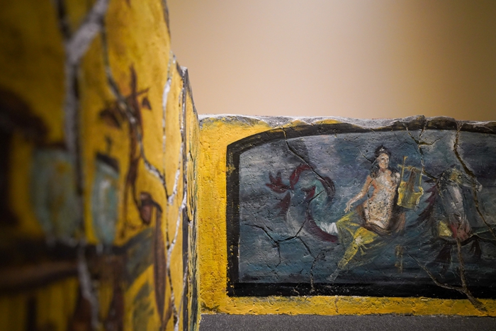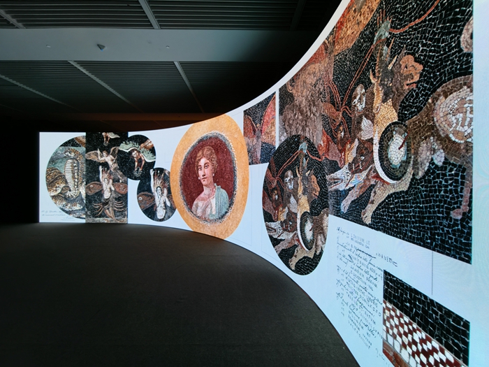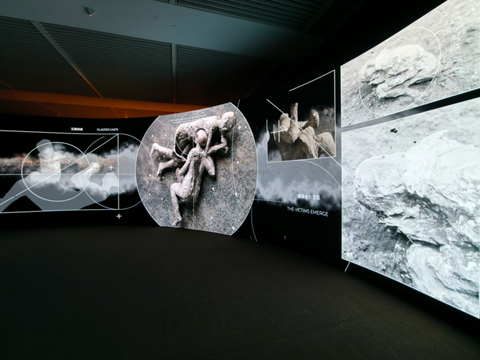 展览特别设置了3个沉浸式展项,通过前沿科技与严谨学术的结合,为观众创造独特的观展体验。其中,通过多媒体装置,观众可以“走进”从未对外开放的希腊化豪宅“农牧神之家”,欣赏其精美的地面与天花板装饰。虚拟重建技术则让观众直观感受庞贝三百年的发掘全过程,理解这座古城与罗马之间的复杂关系。